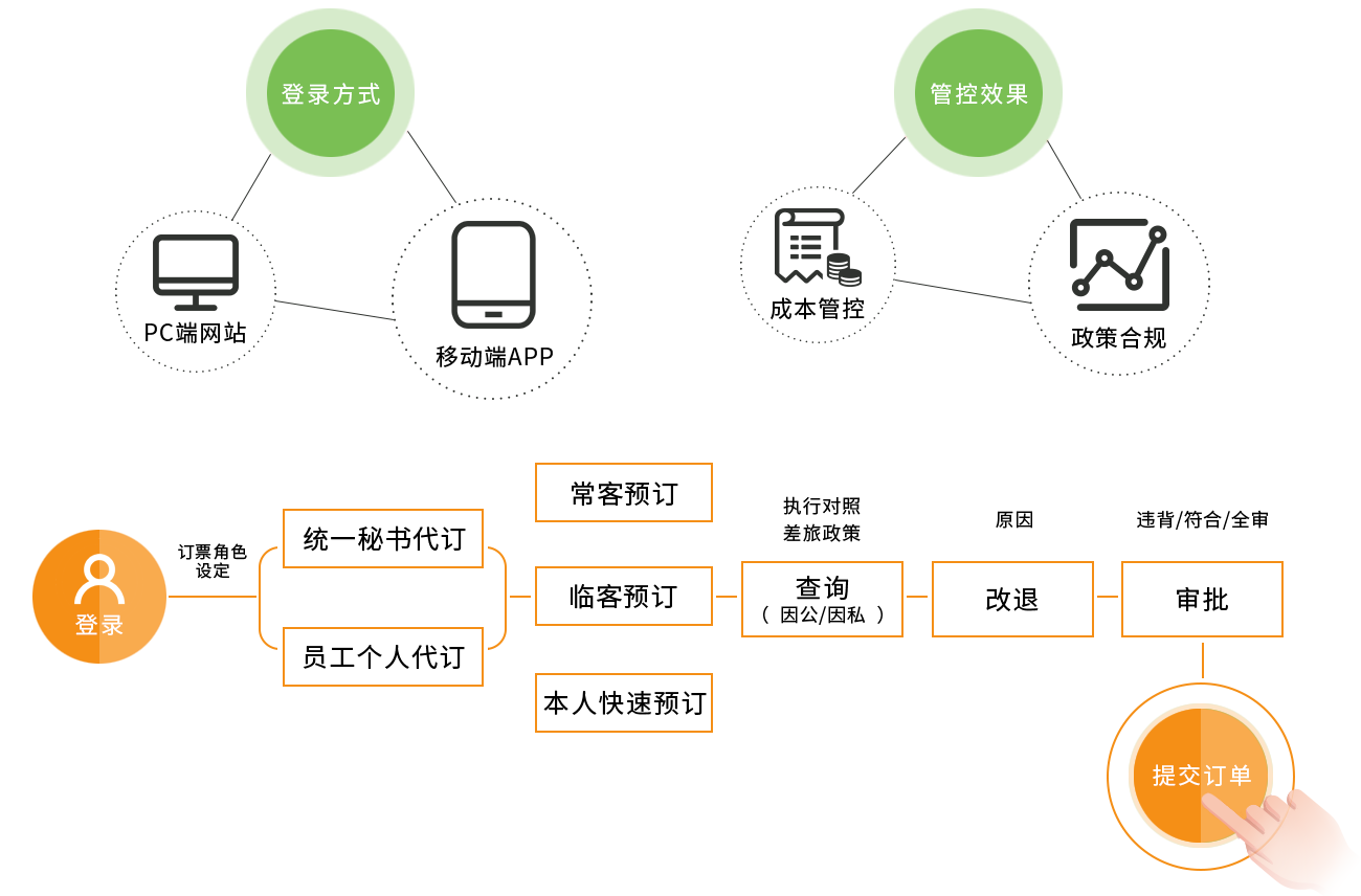 智能化差旅系统,导入企业差旅政策,提供消费权限、审核审批、财报分析等功能实现企业差旅管理的全流程管控,并最终达到控制成本与提高差旅政策合规性的目的。